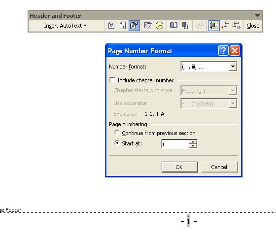 (kết quả: tất cả các trang khai tập được đánh số thứ tự bằng kiểu số La Mã, chữ thường, bắt đầu từ i);